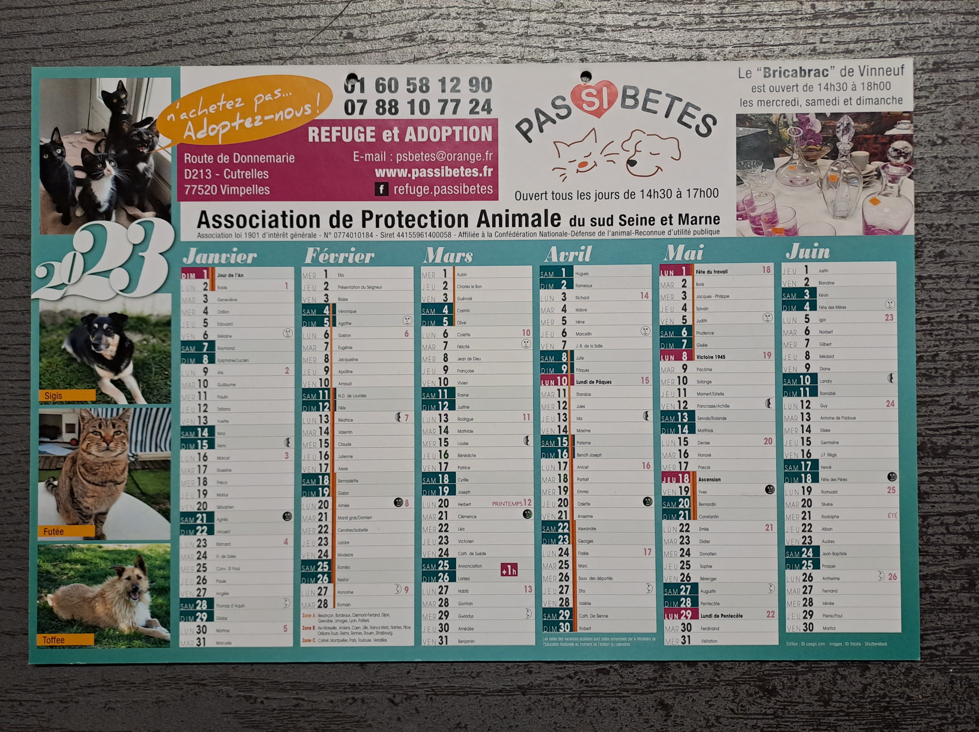 Le calendrier du refuge PAS SI BETES est dès à présent disponible.