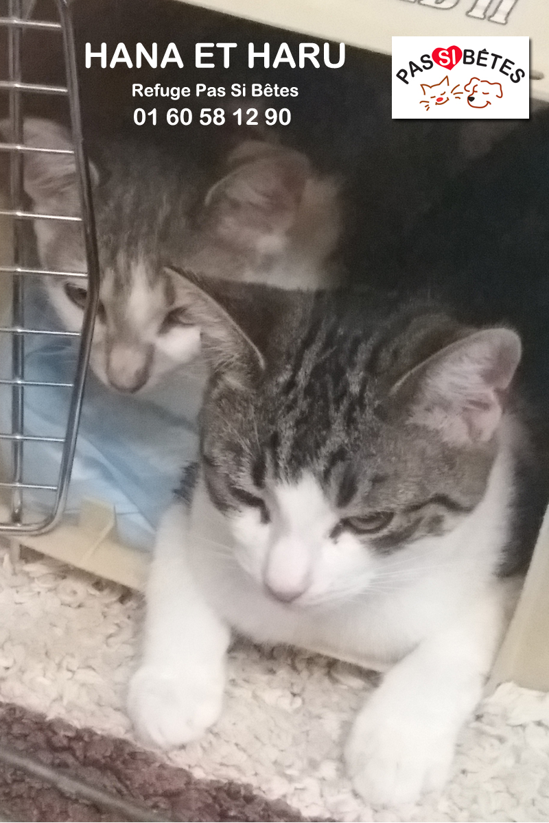 Hana (gris foncé) et sa soeur Haru (prononcer Harou, gris clair) sont à adopter ensemble.