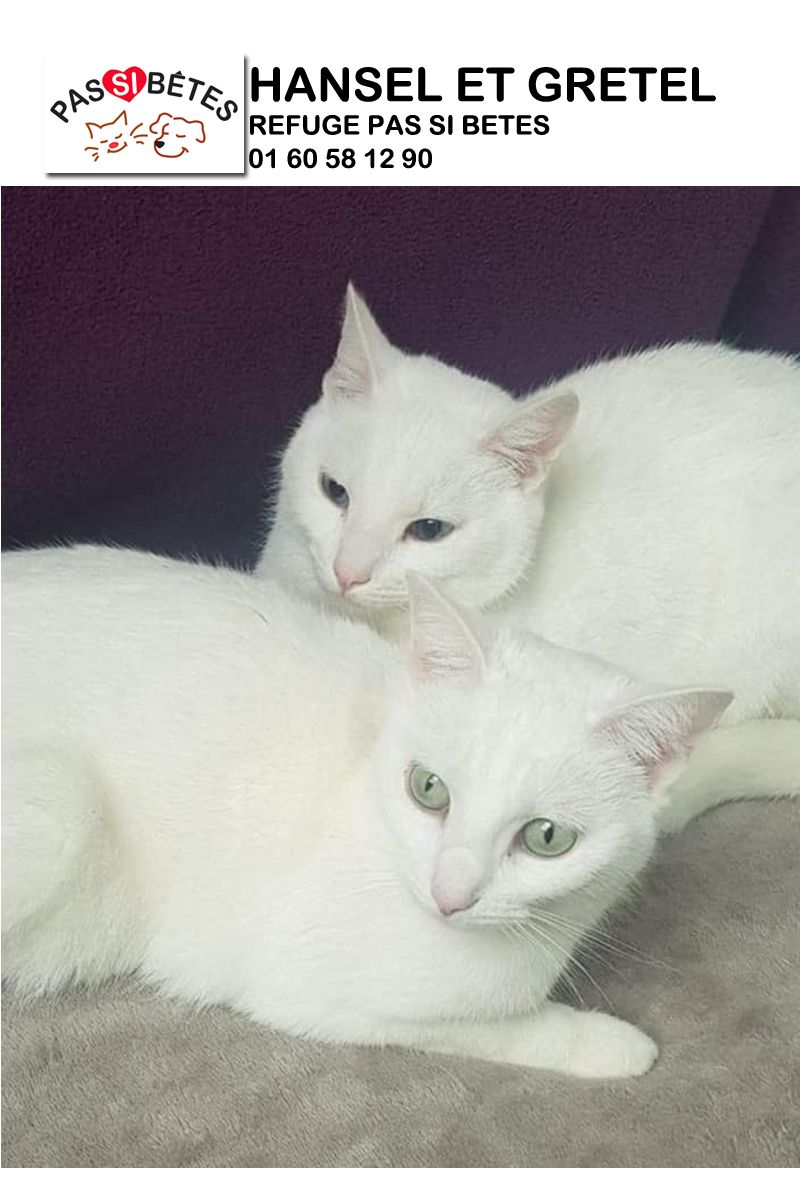 Ils ont toujours vécus ensemble alors on aimerait beaucoup une adoption double. Ils vivaient en appartement mais une adoption en pavillon avec jardin peut s’envisager avec cependant quelques précautions à prendre: Outre le fait, bien sûr, de ne pas les laisser sortir de suite ( 2 mois minimum enfermés), il faudra leur appliquer une crème protectrice aux oreilles, les chats blancs étant sujet au carcinome épidermoïde (cancer de l’oreille).