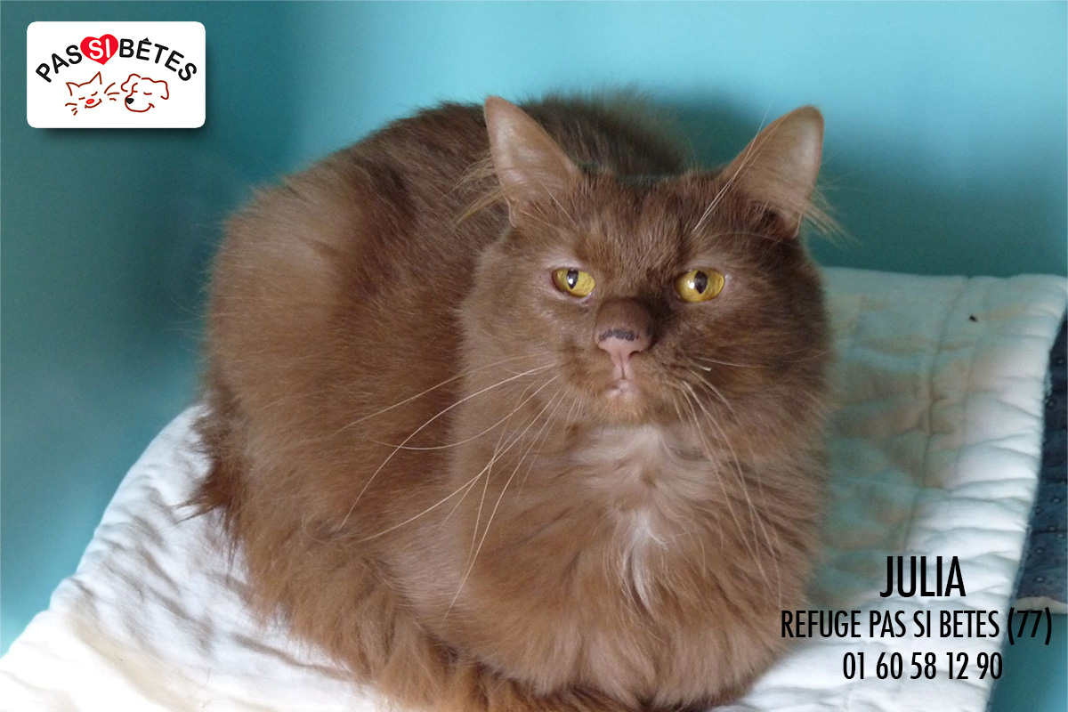 Julia a une pododermatite plasmocytaire, maladie qui atteint les coussinets et parfois le nez, certainement d’origine auto-immune. Julia suit donc un traitement à base de cortisone.