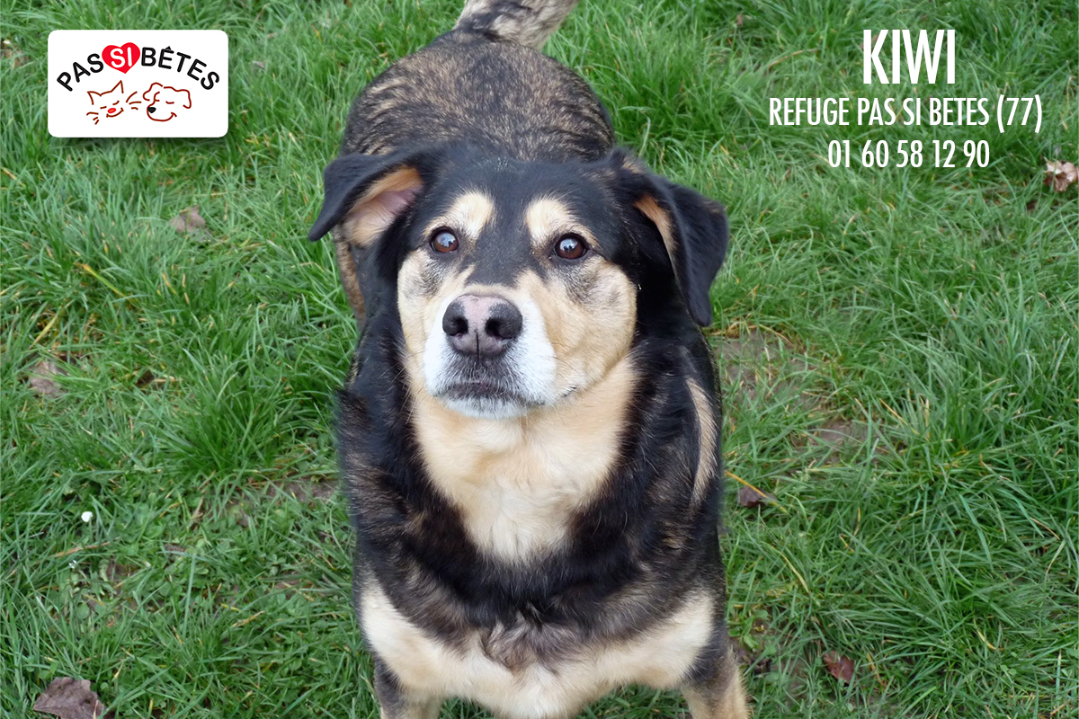 Kiwi vient d’arriver au refuge avec sa pote Indiana car leurs conditions de vie n’étaient pas acceptables (manque de place, manque de promenades, trop de chiens dans le foyer).