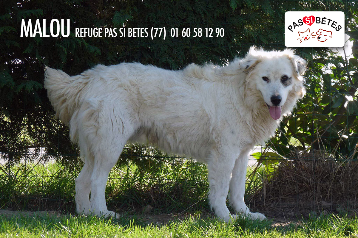 Malou est un bon grand chien très affectueux, très joueur. Il est ok chiens, femelle uniquement, et ok chats. Malou est diagnostiqué sourd mais ça ne l’empêche en rien de vivre normalement.