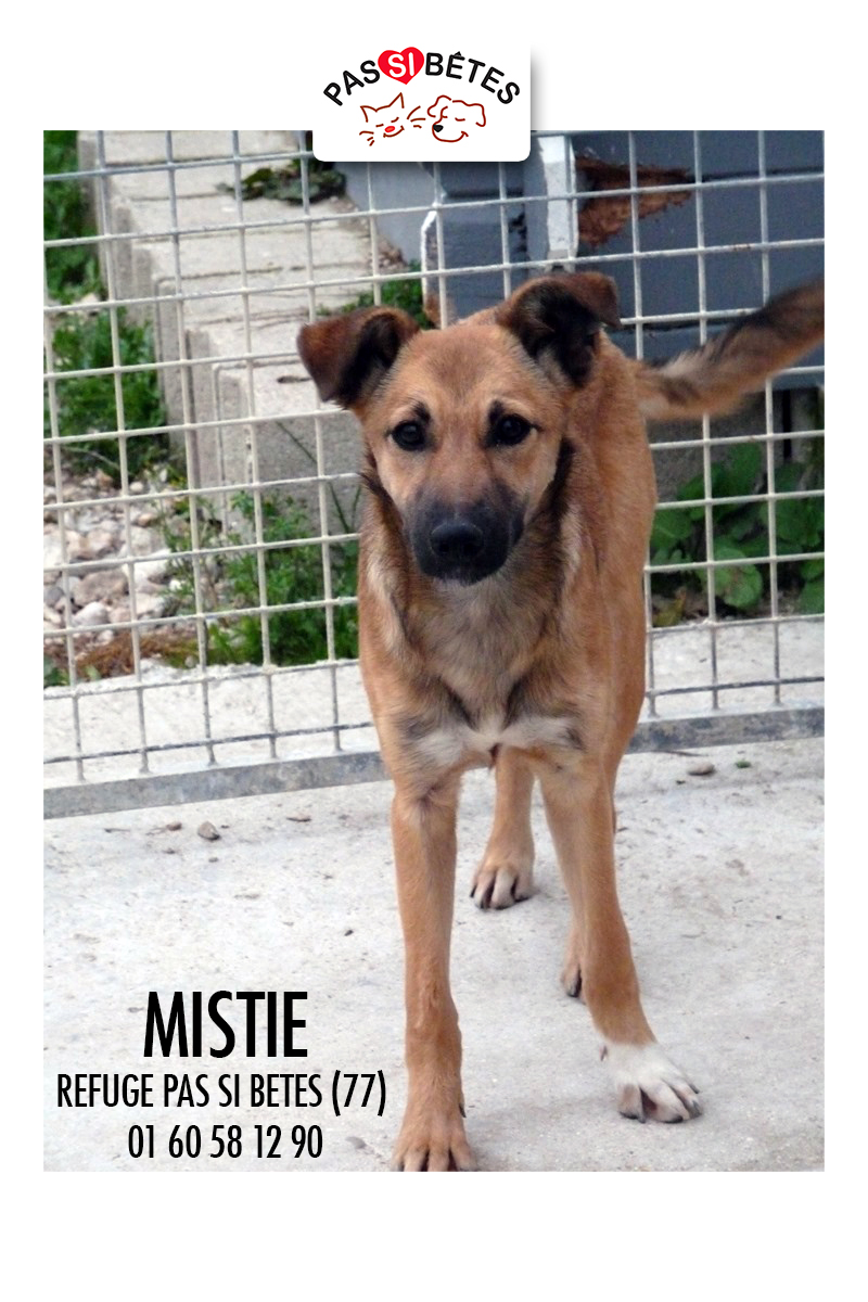 Image précédente Image suivante MISTIE RÉSERVÉE. Femelle née en mars 2019, 11kg, énergique, affectueuse, ok chiens mais pas chats.