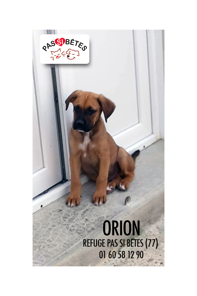 Orion est encore un chiot qui sera de grande taille à l’âge adulte. Il aura besoin, comme tout chiot, d’être éduqué en douceur.