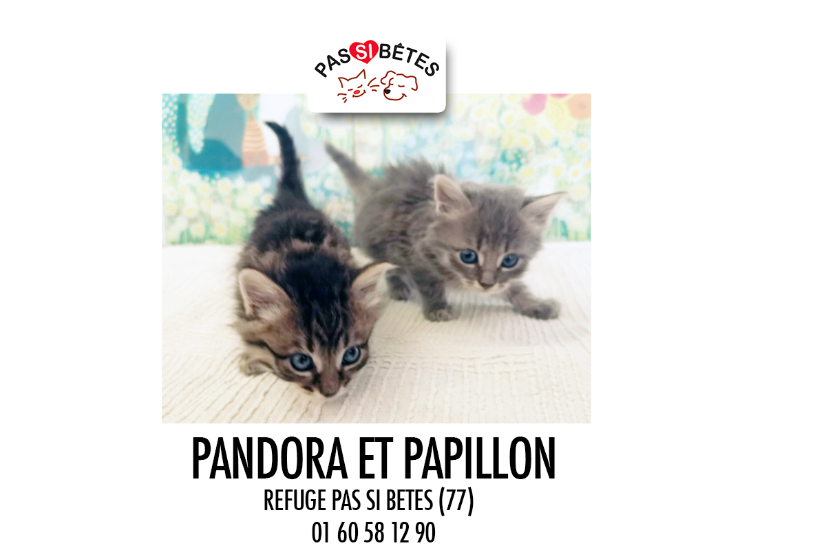 Pandora est la femelle tigrée et son frère Papillon est le mâle gris.
