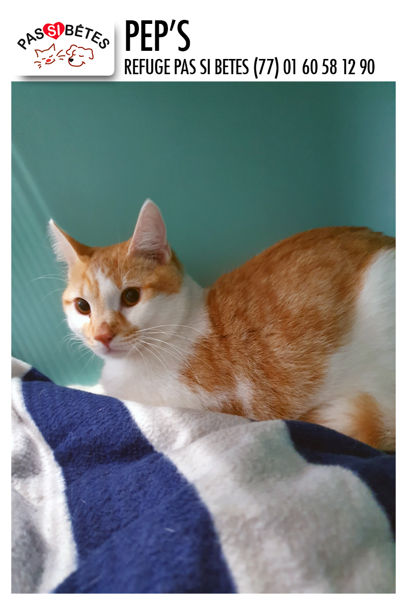 Pep’s a été ramené au refuge pour raisons familiales. Pep’s est un chat très joueur, sociable et câlin avec les humains. Il apprécie particulièrement la compagnie d’autres chats.