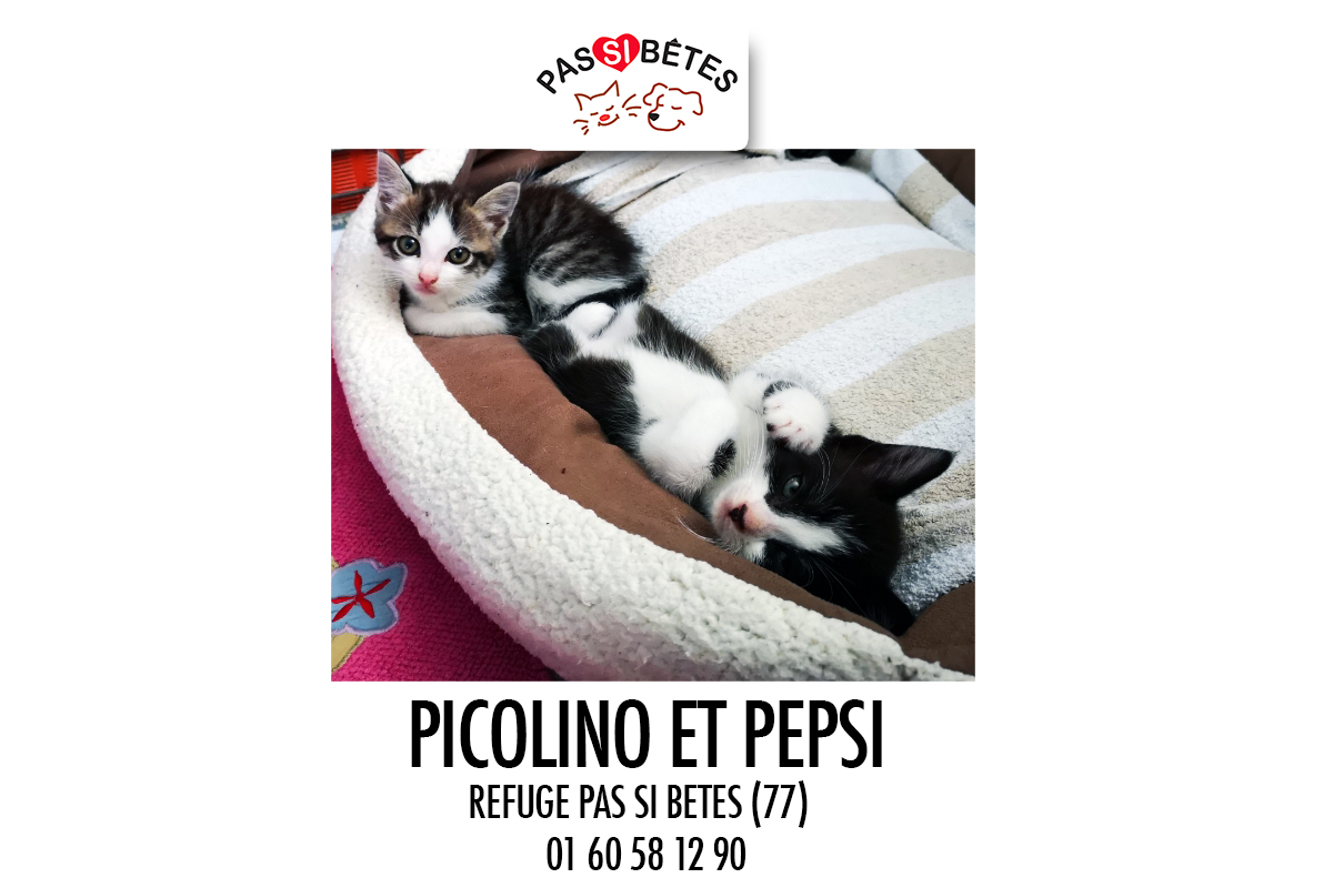 Mâles âgés de 2 mois. Picolino est tigré et blanc. Pepsi est blanc et noir.