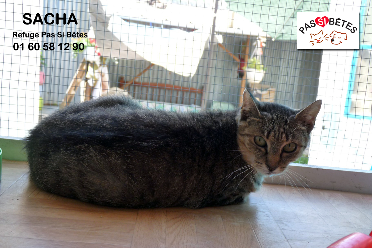 Sacha est très gentille. Tous ses chatons ont été adoptés au refuge, elle aimerait maintenant trouver sa famille.