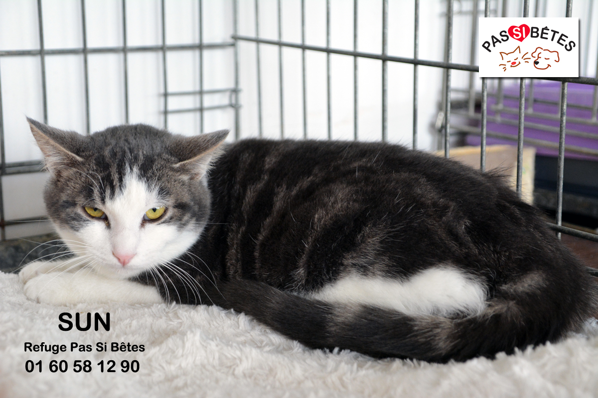 Trouvé dans un entrepôt, Sun est très craintif mais il se soigne.