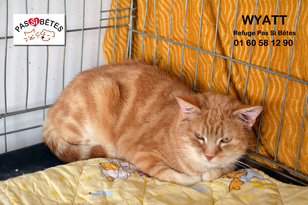 Wyatt vivait dans la rue. C’est un chat joueur, calme et qui apprécie sa tranquillité. Il conviendrait à un couple avec de grands enfants ou des enfants calmes car le bruit le stresse.